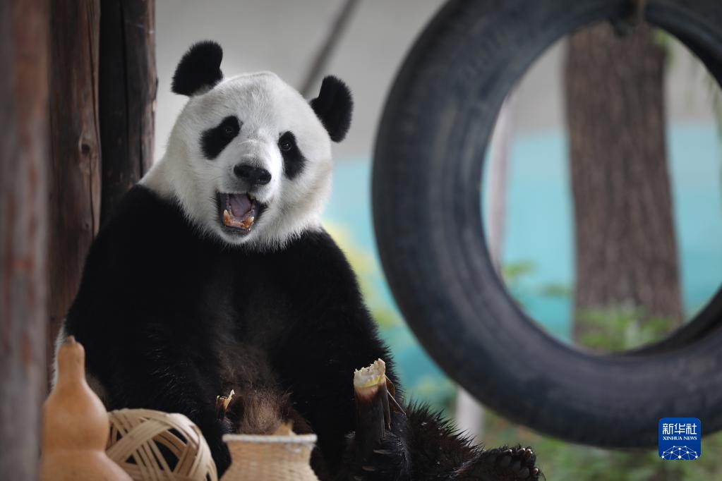 近日,遼寧地區持續高溫,在飼養員的精心照料下,鞍山動(dòng)物園里的5歲大熊貓“剛剛”一邊吹著(zhù)空調降溫,一邊享用新鮮竹子、水果、胡蘿卜、蜂蜜等,清涼度夏。