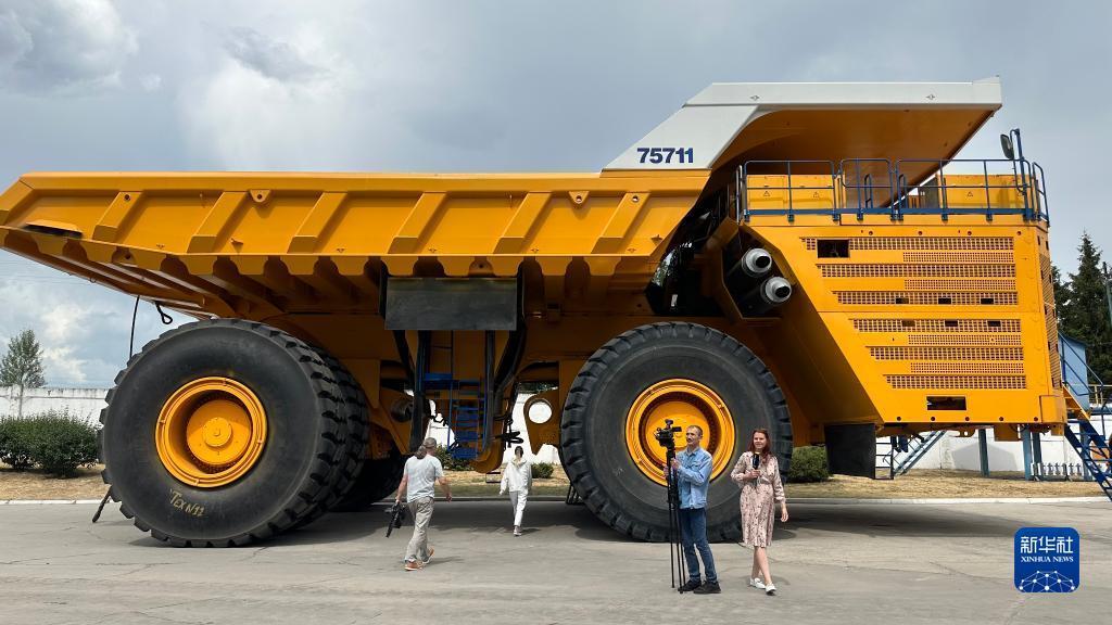 6月26日在白俄羅斯明斯克州若基諾市的白俄羅斯汽車(chē)制造廠(chǎng)拍攝的大型自卸車(chē)。