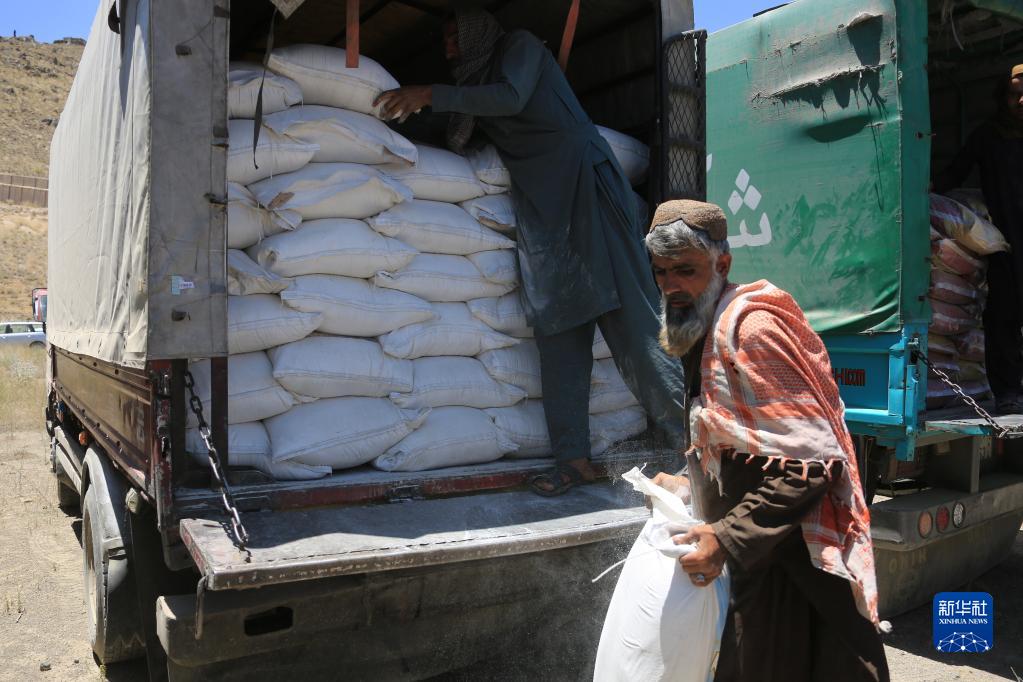 6月21日,在阿富汗盧格爾省,當地居民領(lǐng)取宰牲節過(guò)節物資。