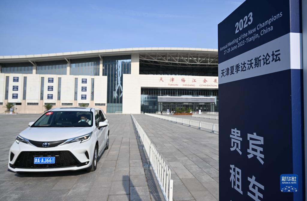 6月27日,一輛嘉賓用車(chē)??吭诘谑膶孟募具_沃斯論壇會(huì )場(chǎng)前。