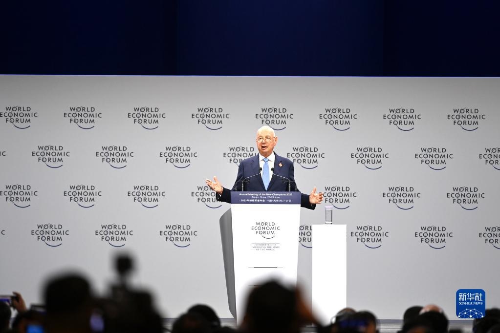 6月27日,世界經(jīng)濟論壇主席施瓦布在第十四屆夏季達沃斯論壇開(kāi)幕式上發(fā)言。