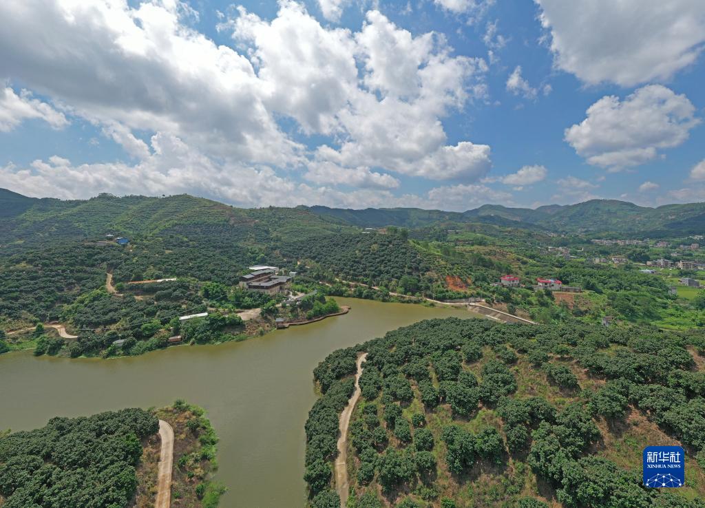 這是6月27日拍攝的廣西北流市北流鎮六行村的連片荔枝樹(shù)(無(wú)人機照片)。