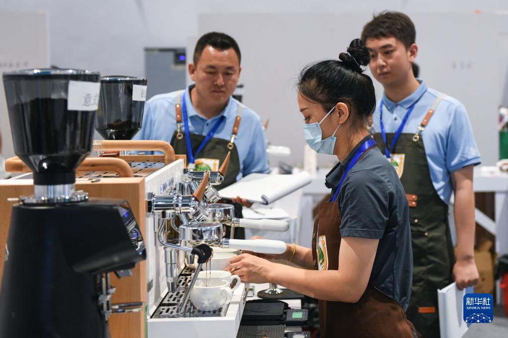6月27日,參賽選手進(jìn)行咖啡沖調項目比賽。