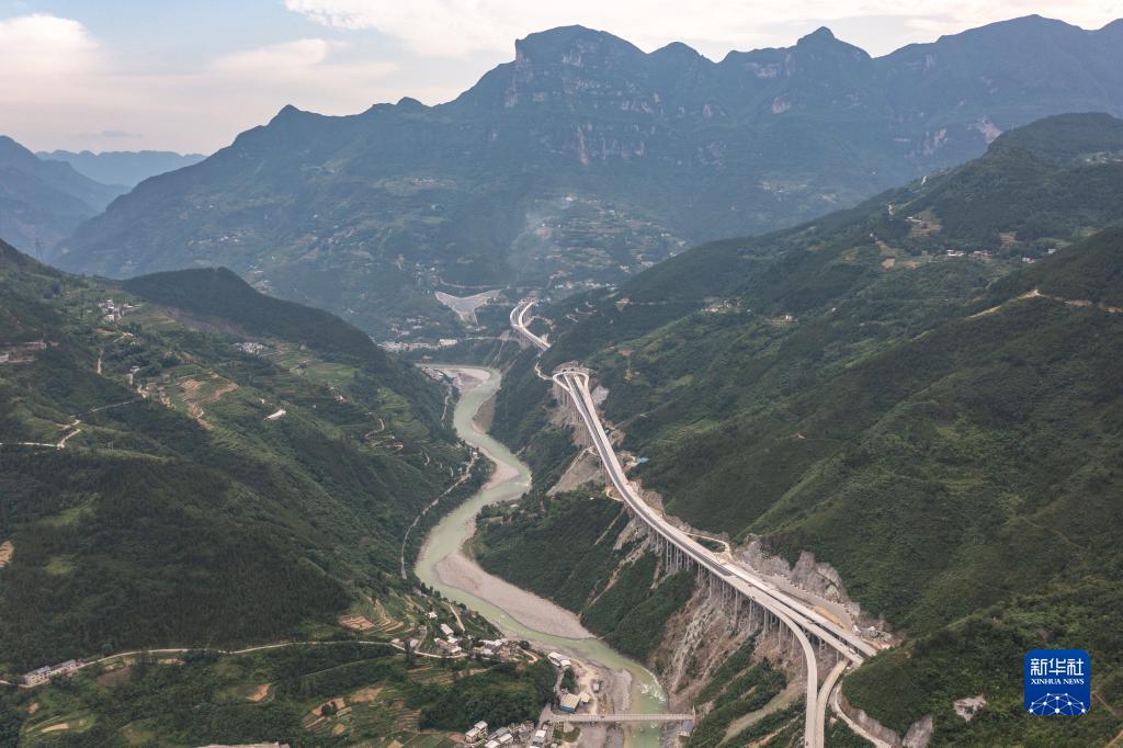 這是6月27日拍攝的巫鎮高速公路二標段施工現場(chǎng)(無(wú)人機照片)。
