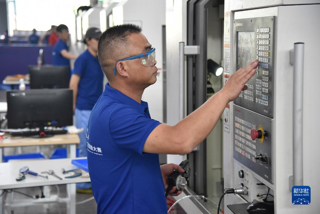 6月27日,參賽技術(shù)工人進(jìn)行數控銑工技能比拼。