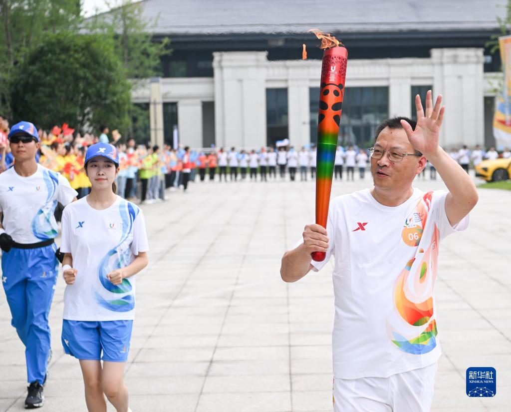 當日,成都第31屆世界大學(xué)生夏季運動(dòng)會(huì )火炬傳遞宜賓站活動(dòng)在宜賓學(xué)院校園內舉行。