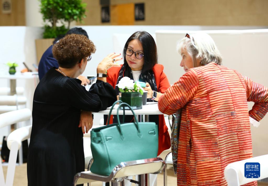 6月28日,與會(huì )者在論壇設置的新領(lǐng)軍者村內交流。
