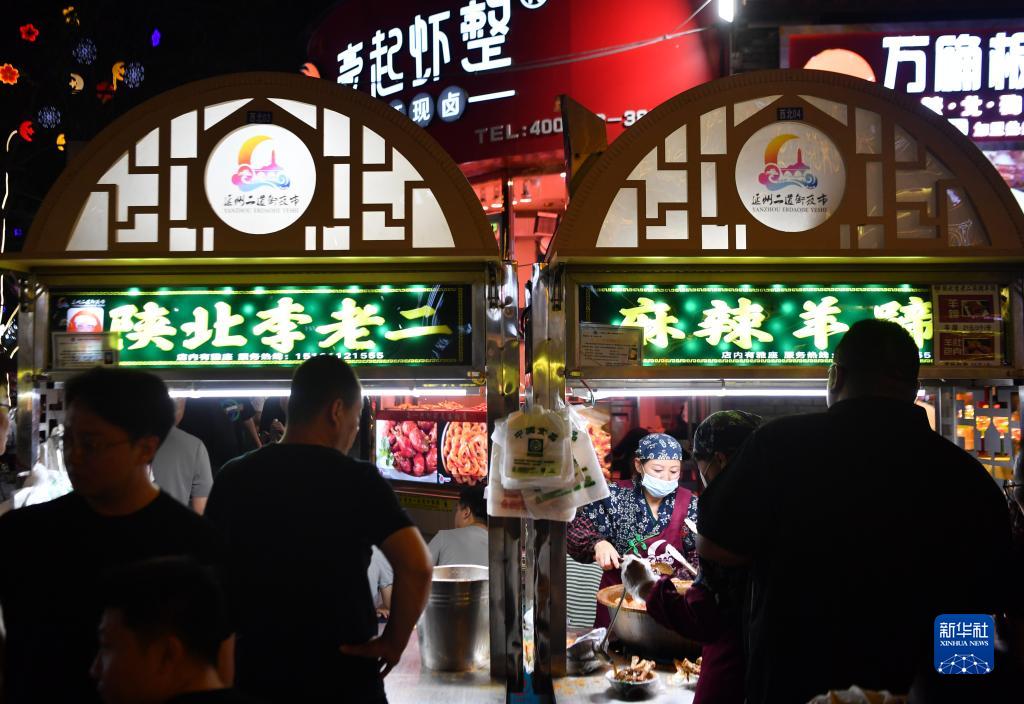 6月28日,游客在延安市延州二道街夜市購買(mǎi)特色小吃。