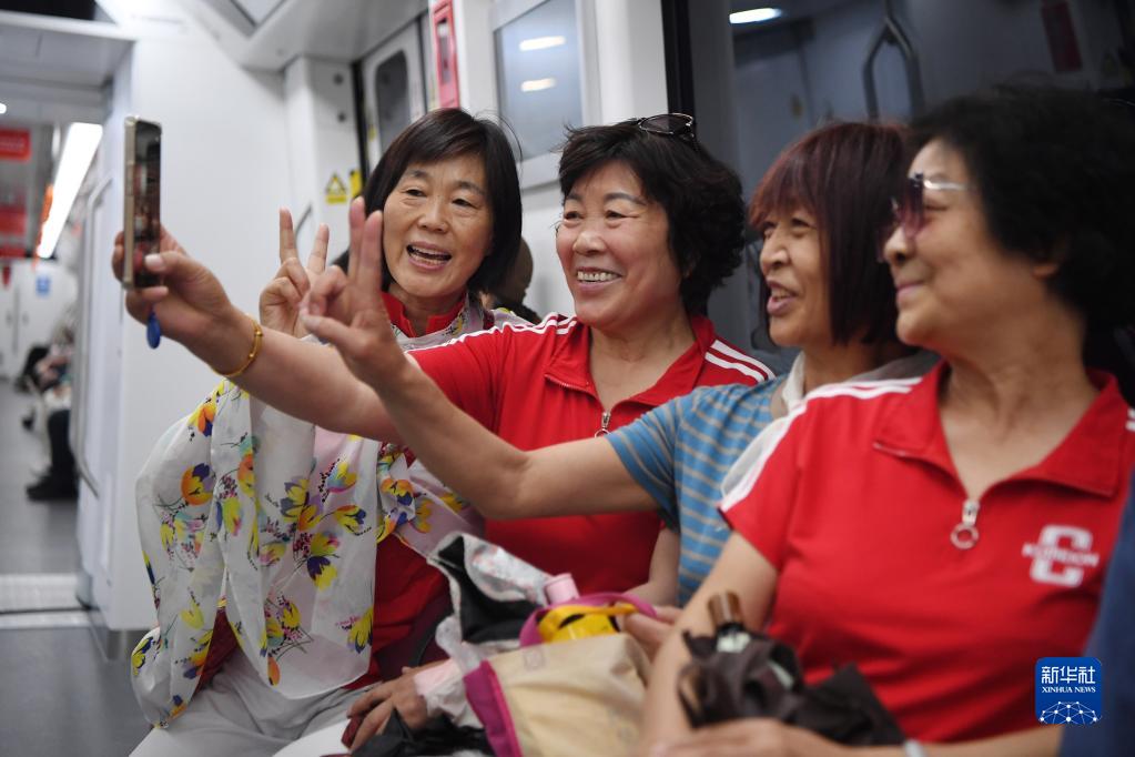 6月29日,乘客在蘭州軌道交通2號線(xiàn)列車(chē)上拍照留念。