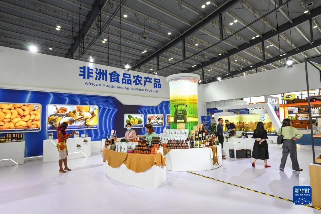 6月29日在長(cháng)沙國際會(huì )展中心拍攝的非洲食品農產(chǎn)品展位。