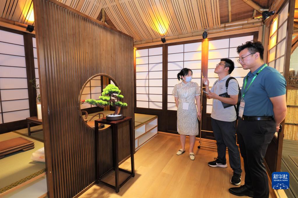 6月29日,參觀(guān)者在竹主題景觀(guān)庭院參觀(guān)。