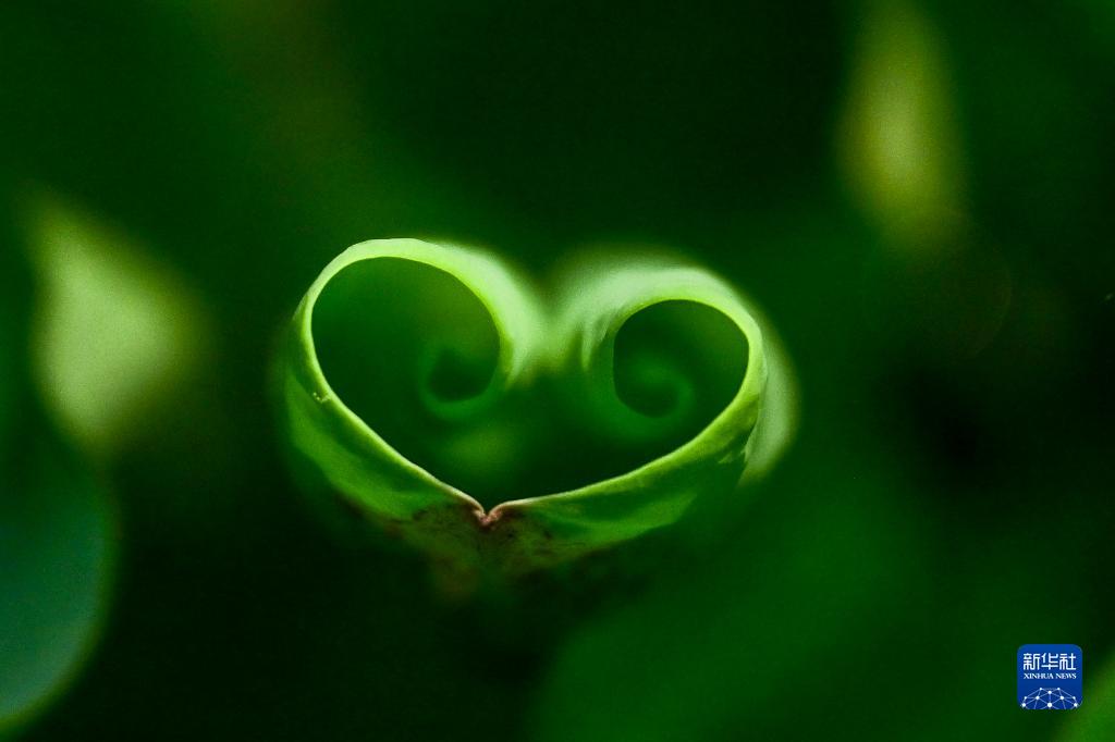 6月24日,在河南省洛陽(yáng)市隋唐城遺址植物園南門(mén)景觀(guān)水系拍攝的“心”形荷葉。