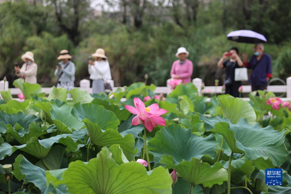 6月24日,游客在云南昆明大觀(guān)公園賞荷拍照。