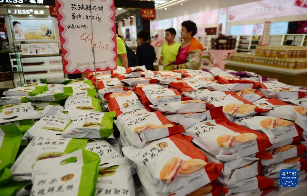 6月29日,游客在位于博后村的亞龍灣國際玫瑰谷選購鮮花餅。