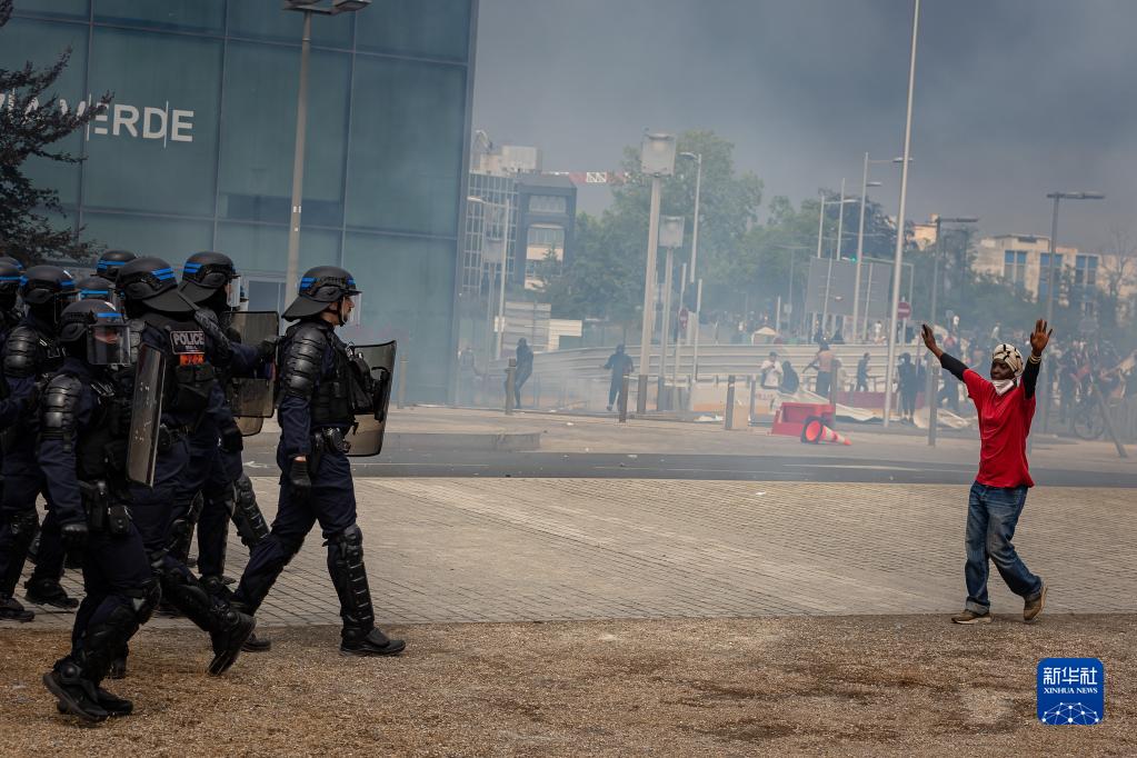 6月29日,在法國上塞納省楠泰爾市,示威者與警察發(fā)生沖突。