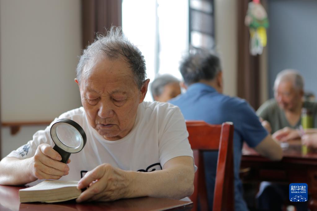 6月29日,老人在如東縣申丞護理院讀書(shū)、娛樂(lè )。