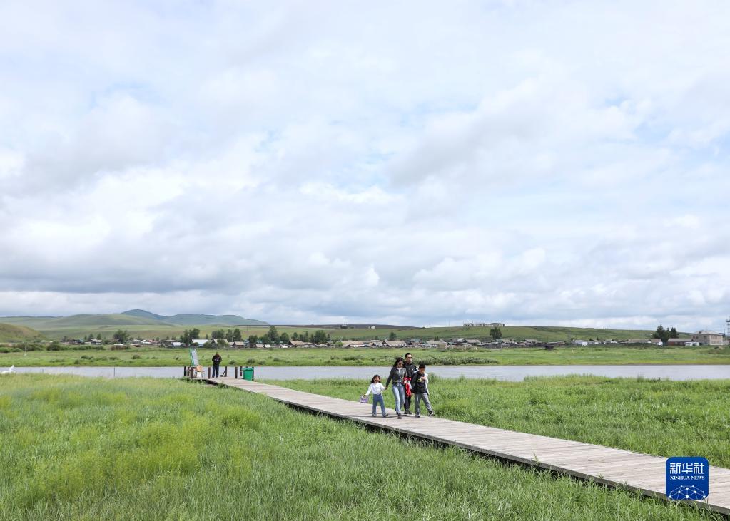 6月29日,游客在蒙兀室韋蘇木一處游船碼頭游覽。