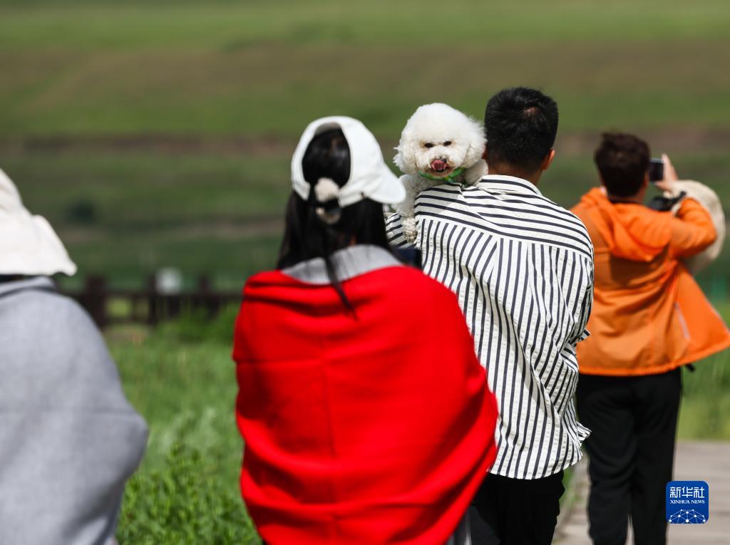 6月29日,游客在蒙兀室韋蘇木一處游船碼頭附近游覽。