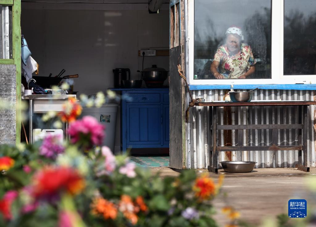 6月28日,考占花在烤制華夫餅??颊蓟ㄊ嵌砹_斯族,2004年開(kāi)始經(jīng)營(yíng)俄羅斯族家庭游。