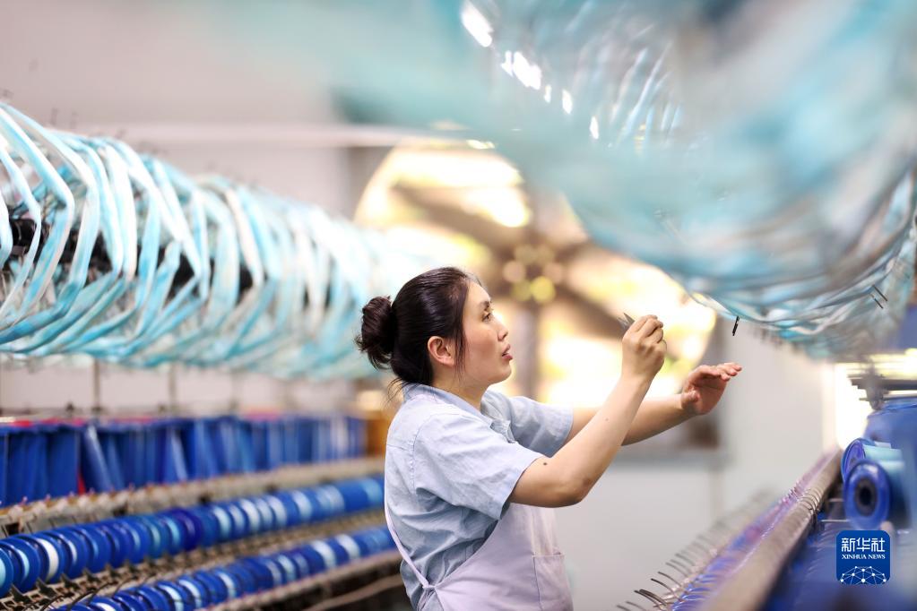 6月27日,工人在重慶市黔江區一家絲綢紡織企業(yè)生產(chǎn)車(chē)間作業(yè)。