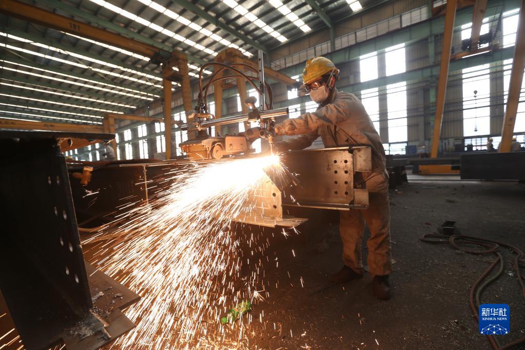 6月25日,工人在四川省眉山市一鋼構企業(yè)車(chē)間加工鋼構零部件。