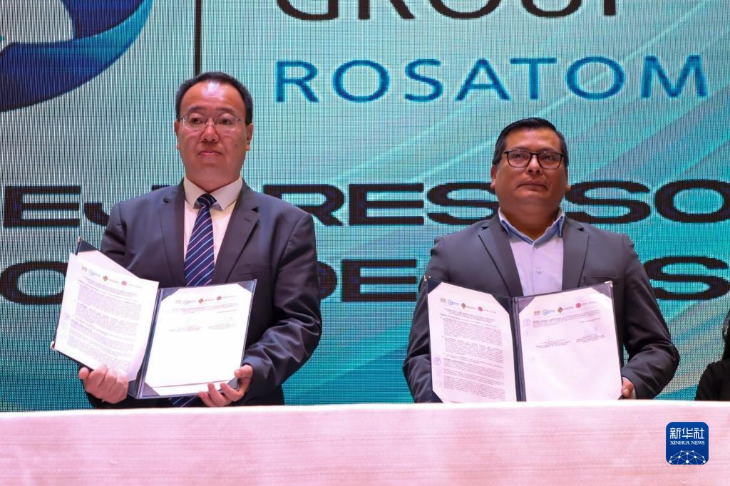 6月29日,在玻利維亞拉巴斯的總統府,中玻雙方代表展示簽署的玻鋰資源開(kāi)發(fā)合作協(xié)議。
