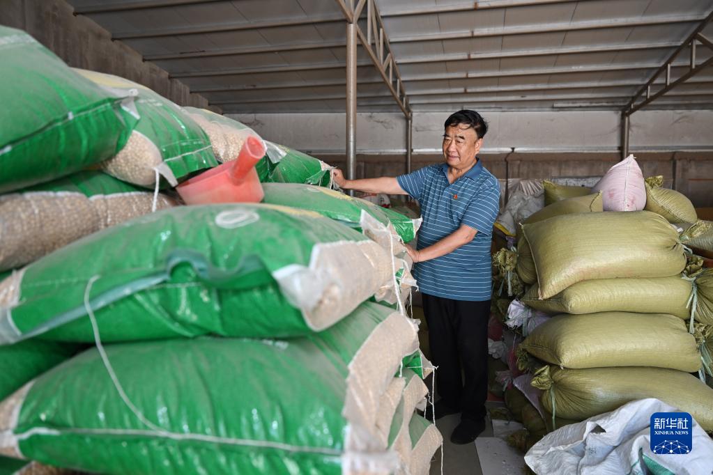 6月8日,徐淙祥在太和縣淙祥現代農業(yè)種植專(zhuān)業(yè)合作社整理大豆種子,為夏種做準備。