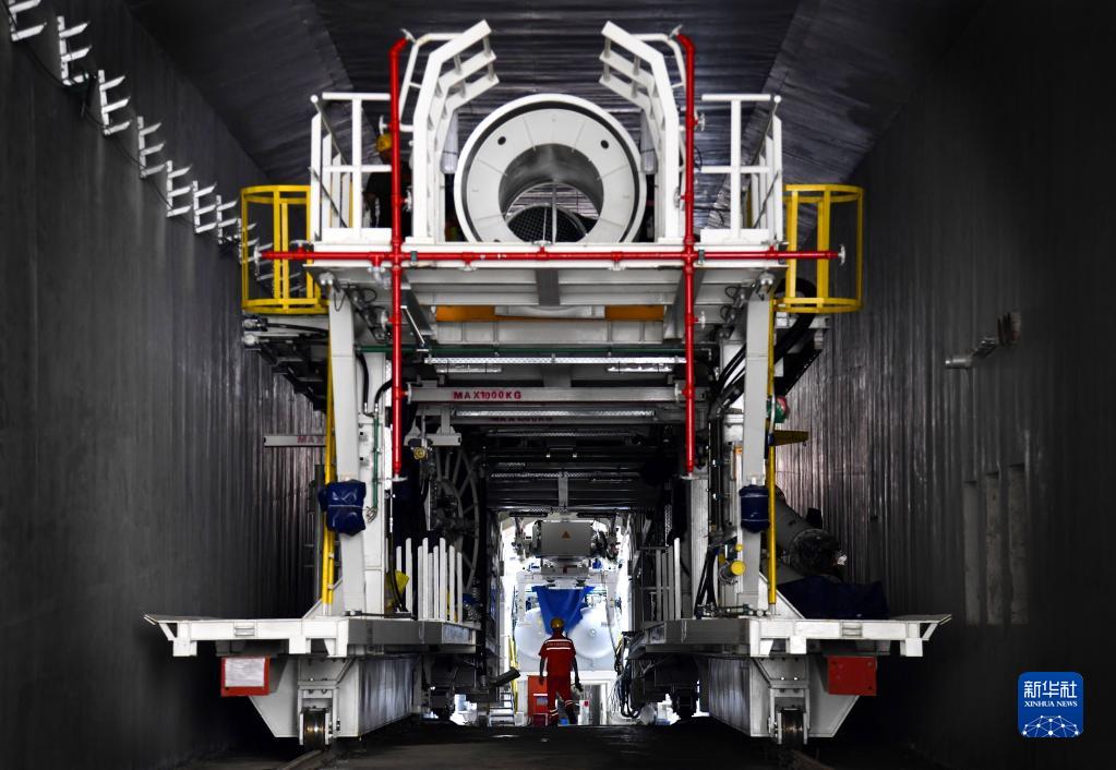 6月30日,一名工人在服務(wù)隧道內對盾構機運行進(jìn)行監控、維護。