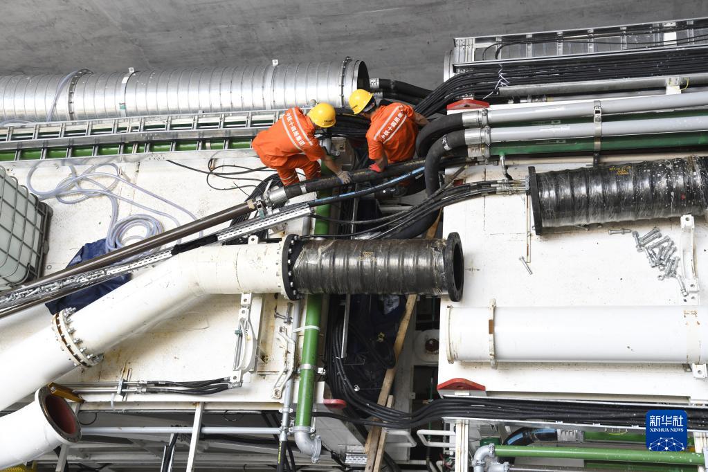 6月30日,工人在對盾構機運行進(jìn)行監控、維護。