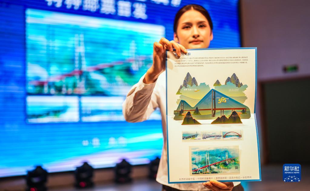 當日,《現代橋梁建設》特種郵票首發(fā)儀式在貴州省博物館舉行。此次發(fā)行的特種郵票一套3枚,小型張1枚,郵票圖案名稱(chēng)為滬蘇通長(cháng)江公鐵大橋、甌江北口大橋、平南三橋,小型張圖案名稱(chēng)為北盤(pán)江第一橋。