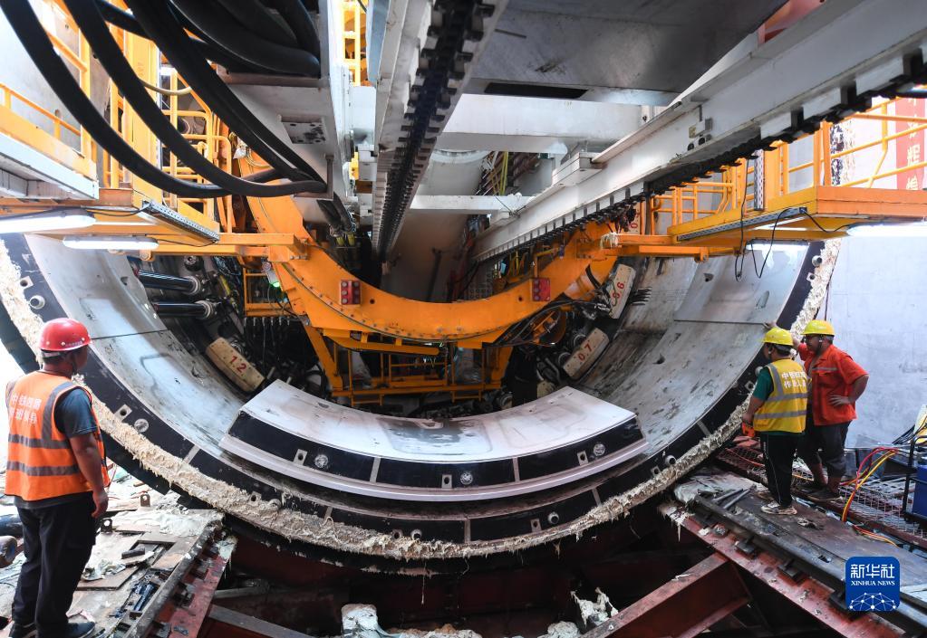 6月30日,工人在廣東佛山市獅山鎮獅山1號隧道中鐵四局城軌分公司“初心號”盾構機內部進(jìn)行管片安裝。