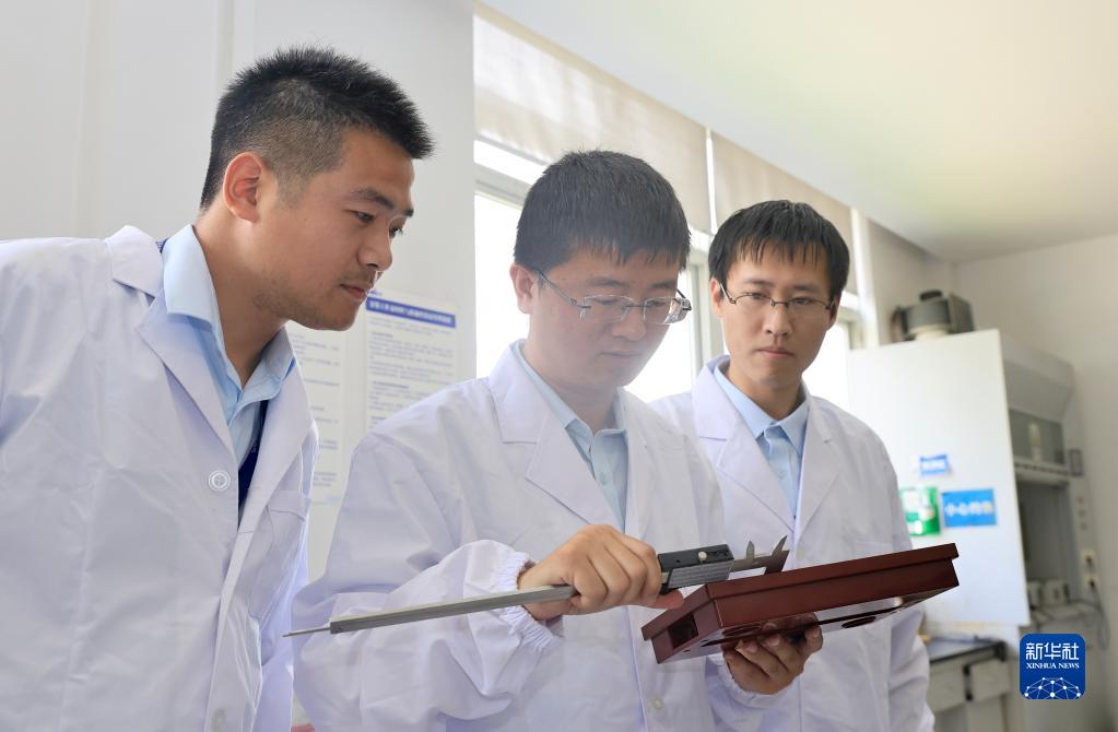 6月27日,江蘇海寶新能源有限公司技術(shù)部部長(cháng)楊海濤(中)在對新設計的產(chǎn)品樣件進(jìn)行核對確認。