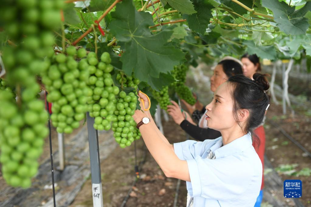 6月30日,杜涔誠在如東縣虹橋家庭農場(chǎng)葡萄園進(jìn)行精品果整修。