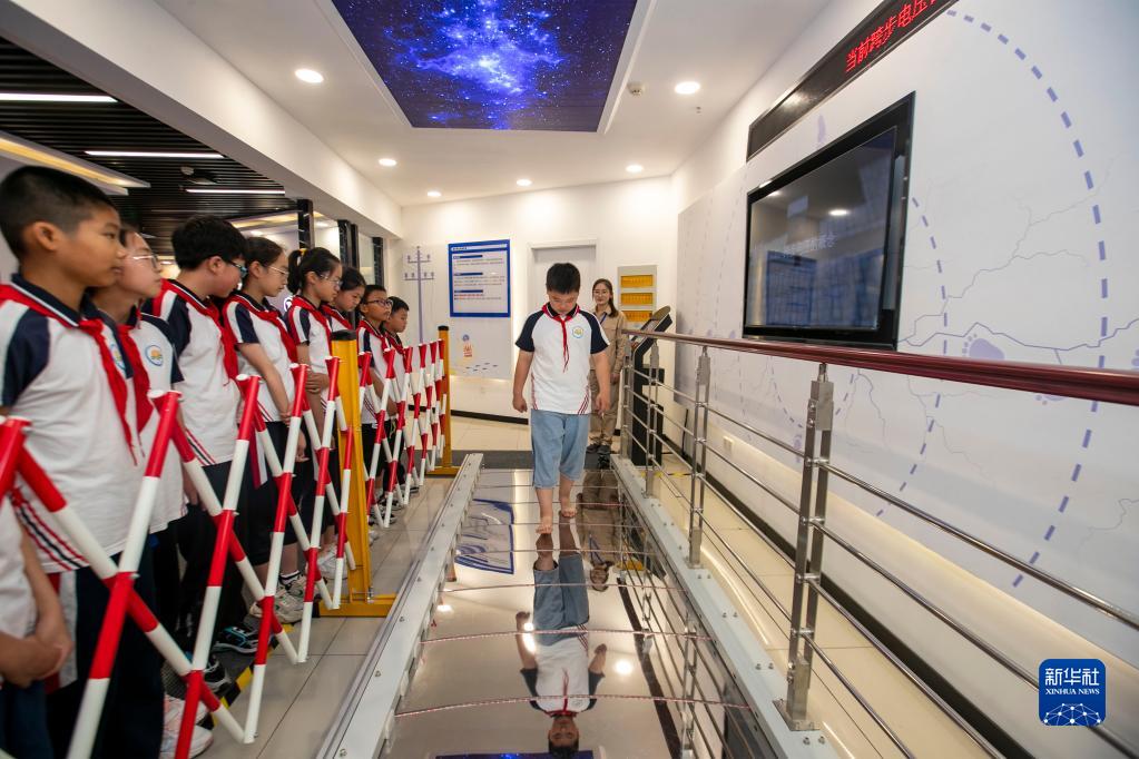 6月30日,在江蘇省泰州市安全技能實(shí)訓基地,講解員指導學(xué)生進(jìn)行體驗,了解跨步電壓的危害。