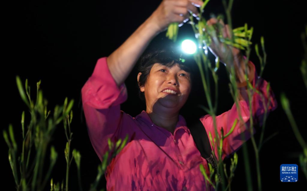 6月30日,在衡陽(yáng)市祁東縣石亭子鎮,村民在采摘黃花菜。