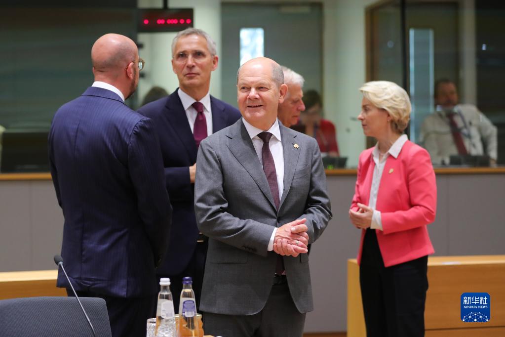 6月29日,在比利時(shí)布魯塞爾,(從左至右)歐洲理事會(huì )主席米歇爾、北約秘書(shū)長(cháng)斯托爾滕貝格、德國總理朔爾茨、歐盟外交與安全政策高級代表博雷利、歐盟委員會(huì )主席馮德萊恩在歐盟峰會(huì )前交談。