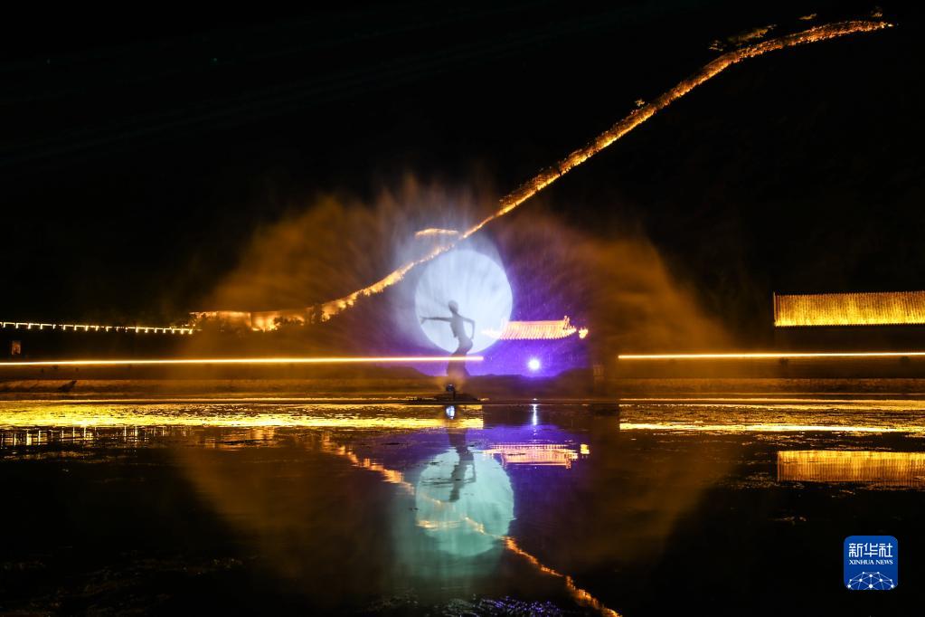 6月30日,葫蘆島市綏中縣九門(mén)口長(cháng)城景區內上演水幕電影。
