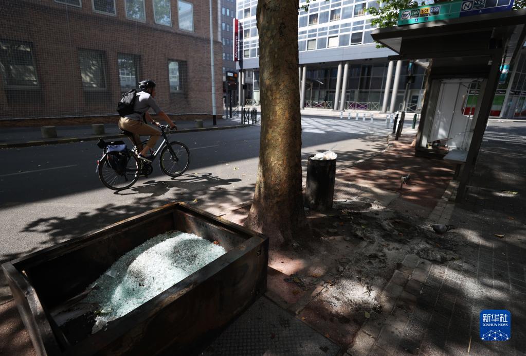 6月30日,在法國上塞納省楠泰爾市,一處公交站被示威者毀壞。