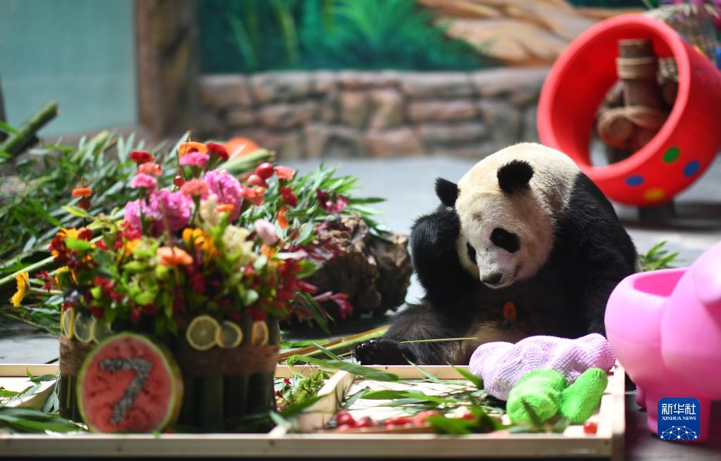 青海西寧:大熊貓樂(lè )享高原夏日生活