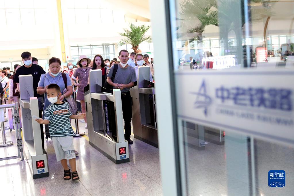 7月1日,旅客在位于云南景洪市的西雙版納站通過(guò)閘機進(jìn)站乘車(chē)。