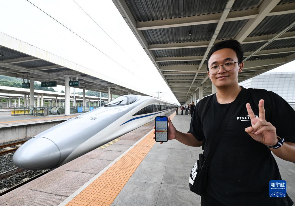 7月1日,在四川樂(lè )山站,回鄉探親的香港乘客楊俊杰展示G2963次列車(chē)電子乘坐憑證。