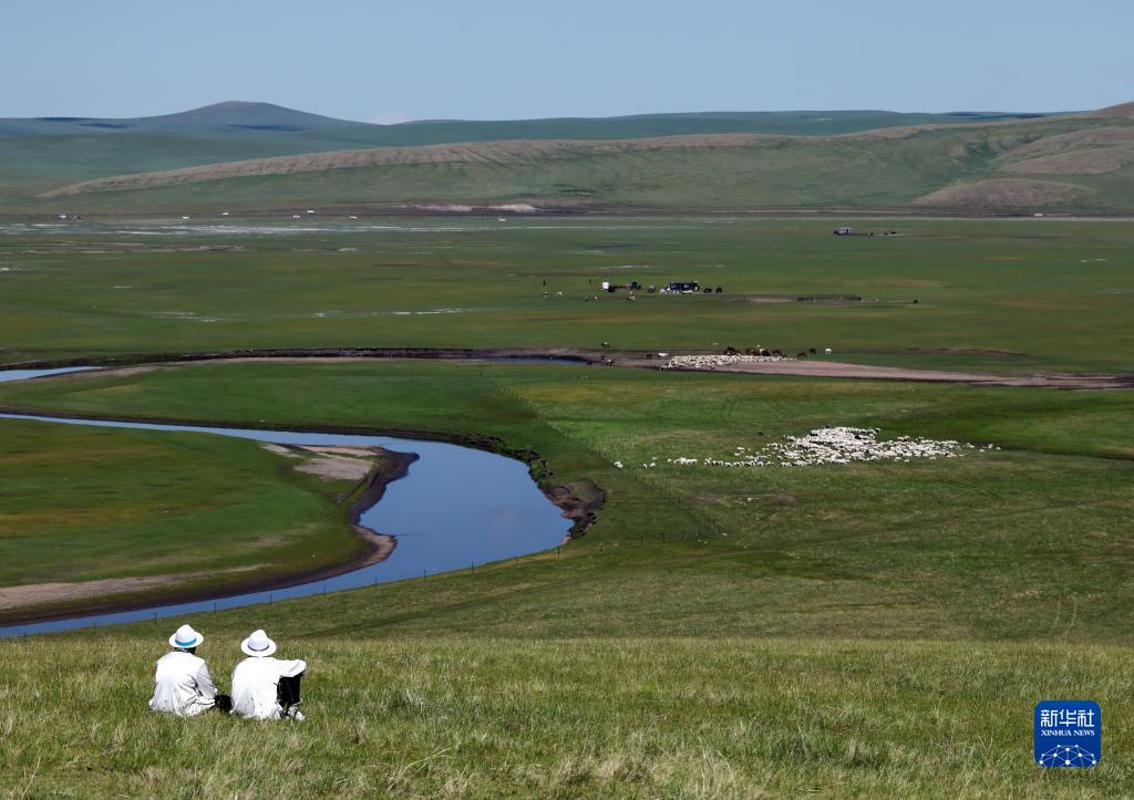 7月1日,兩名參加開(kāi)幕式的演員在活動(dòng)現場(chǎng)周邊眺望莫爾格勒河。