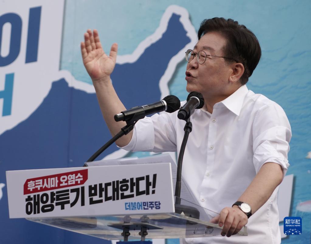 7月1日,韓國最大在野黨共同民主黨黨首李在明在首爾舉行的“譴責福島核污染水海洋排放泛國民大會(huì )”上發(fā)言。