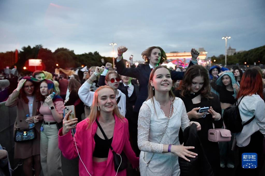 莫斯科高爾基公園當日為中學(xué)畢業(yè)生舉行慶?;顒?dòng)。