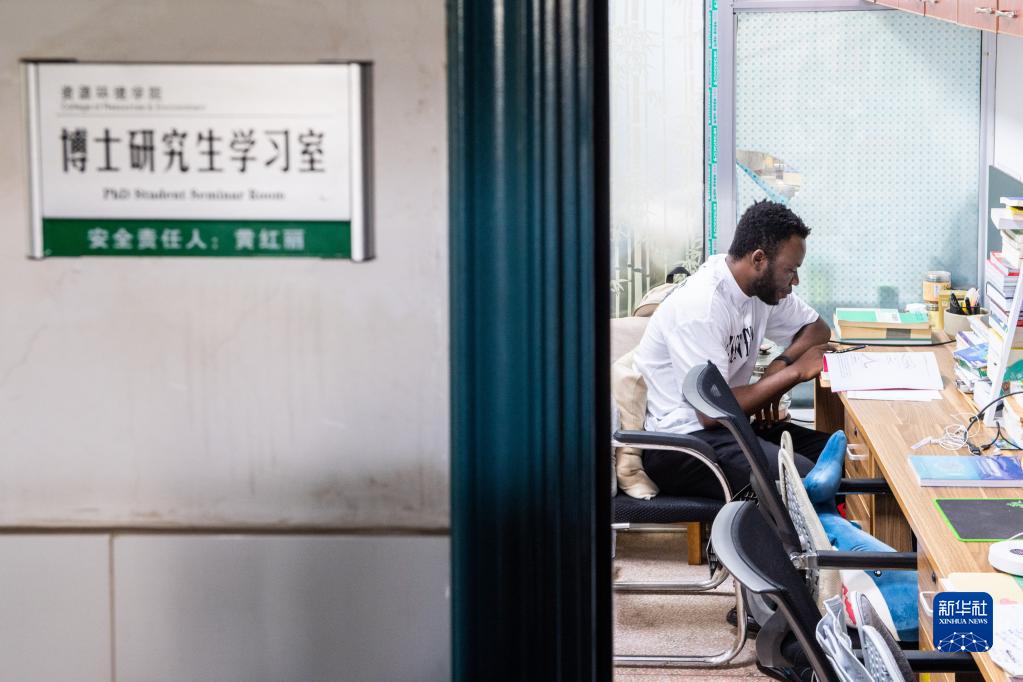 6月26日,尼克在湖南農業(yè)大學(xué)環(huán)境與生態(tài)學(xué)院博士研究生學(xué)習室自習。