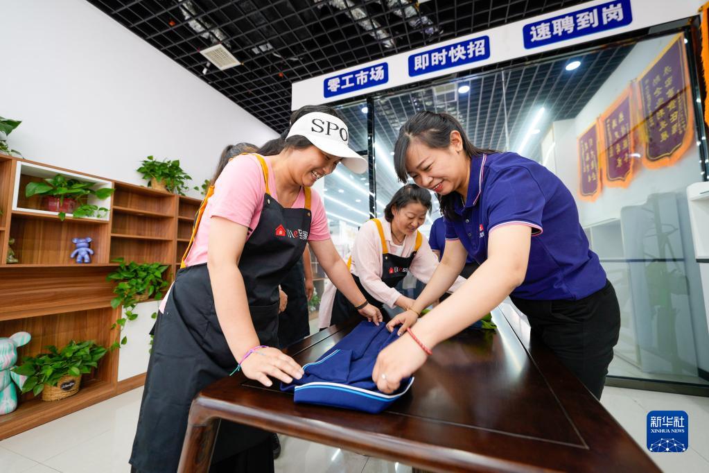 7月2日,河北省唐山市路南區初心家園零工市場(chǎng)服務(wù)站的工作人員在為求職者進(jìn)行家政技能培訓。