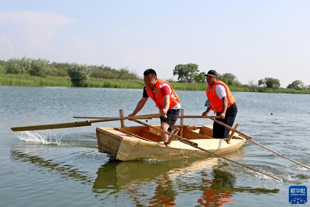 7月2日,在第十一屆赫哲族烏日貢大會(huì )現場(chǎng),赫哲族選手參加劃船比賽。