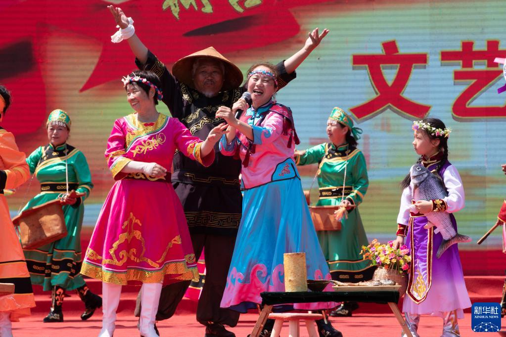 7月2日,在第十一屆赫哲族烏日貢大會(huì )現場(chǎng),赫哲族選手演唱伊瑪堪。