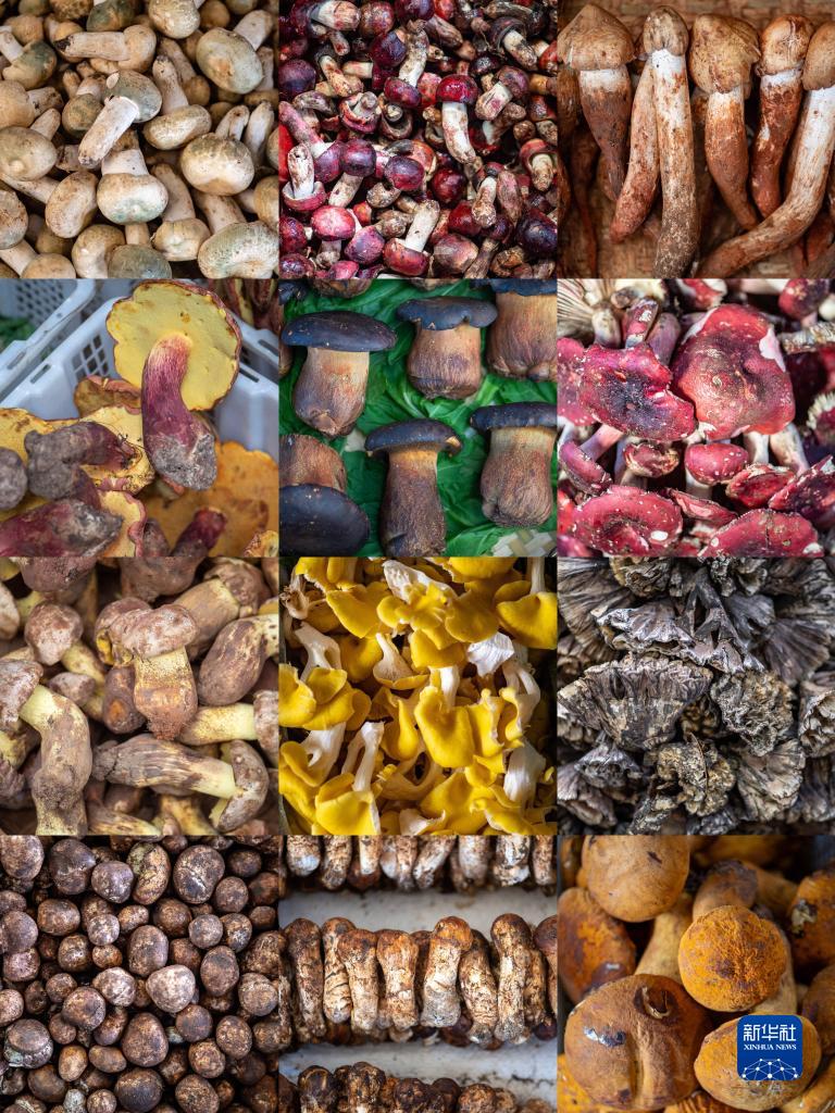 目前在野生菌交易市場(chǎng)熱銷(xiāo)的野生菌(拼板照片,7月2日攝)。