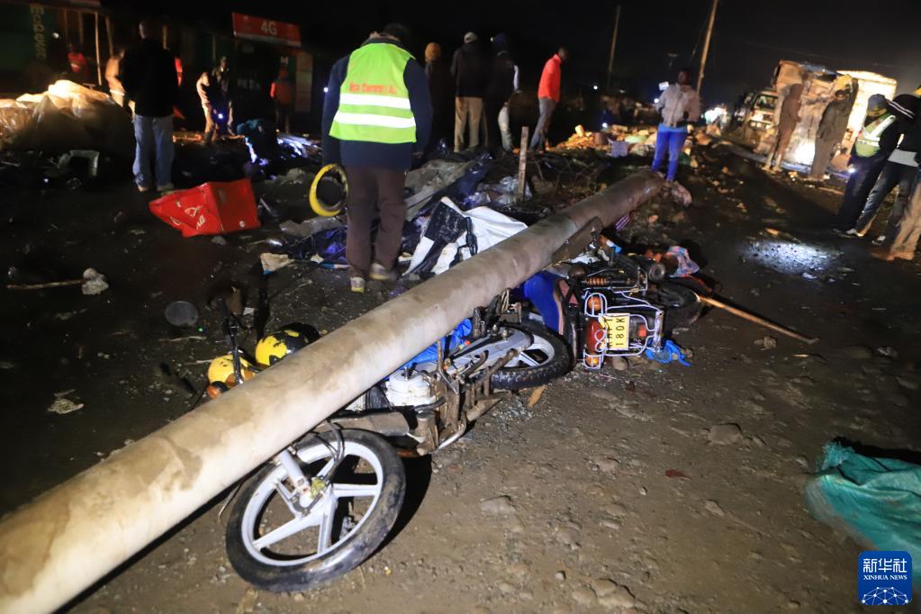 這是6月30日在肯尼亞西北部凱里喬郡隆迪亞尼鎮附近拍攝的車(chē)禍現場(chǎng)。